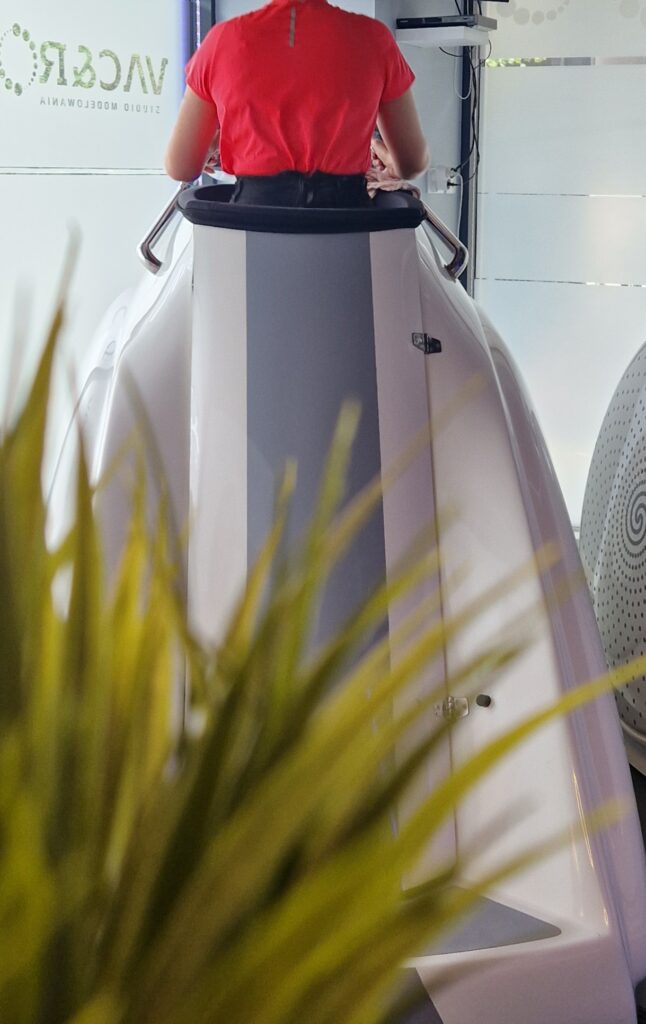 Bieżnia VACU – urządzenie treningowe, które łączy klasyczny marsz lub bieg z działaniem podciśnienia i podczerwieni w specjalnej kapsule. Dzięki temu ćwiczenia stają się bardziej efektywne — szczególnie w redukcji tkanki tłuszczowej w dolnych partiach ciała